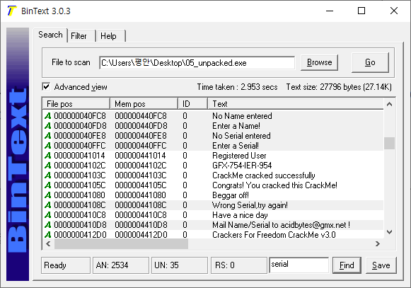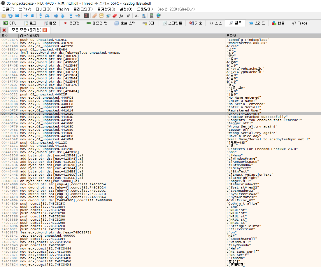 디버거의 문자열 찾기를 이용해 시리얼 키가 있는 곳은 쉽게 찾을 수 있었습니다.